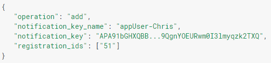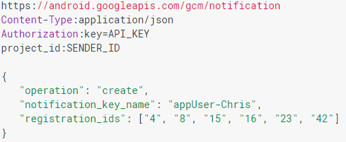 Here's an axample of the request that's required to associate a group with a registration id for creation: